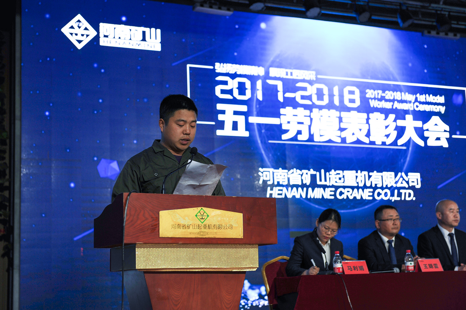 公司創始人、黨委書記崔培軍發表重要講話。他首先向全體員工致以節日的問候,向獲獎勞模表示祝賀!感謝大家為公司所做出的努力與貢獻。他就勞模精神、工匠精神、質量比武、生產工期、素質素養五個方面提出希望和要求。希望在勞模精神的鼓舞下,全體員工要抓緊生產,服務客戶。繼續深化質量月活動。立足本職崗位,再創新的佳績。踐行工匠精神,以更高標準嚴格要求自己。團結一心,眾志成城,努力將河南礦山打造成為一個享有盛譽、具有活力、追求卓越的**起重企業。