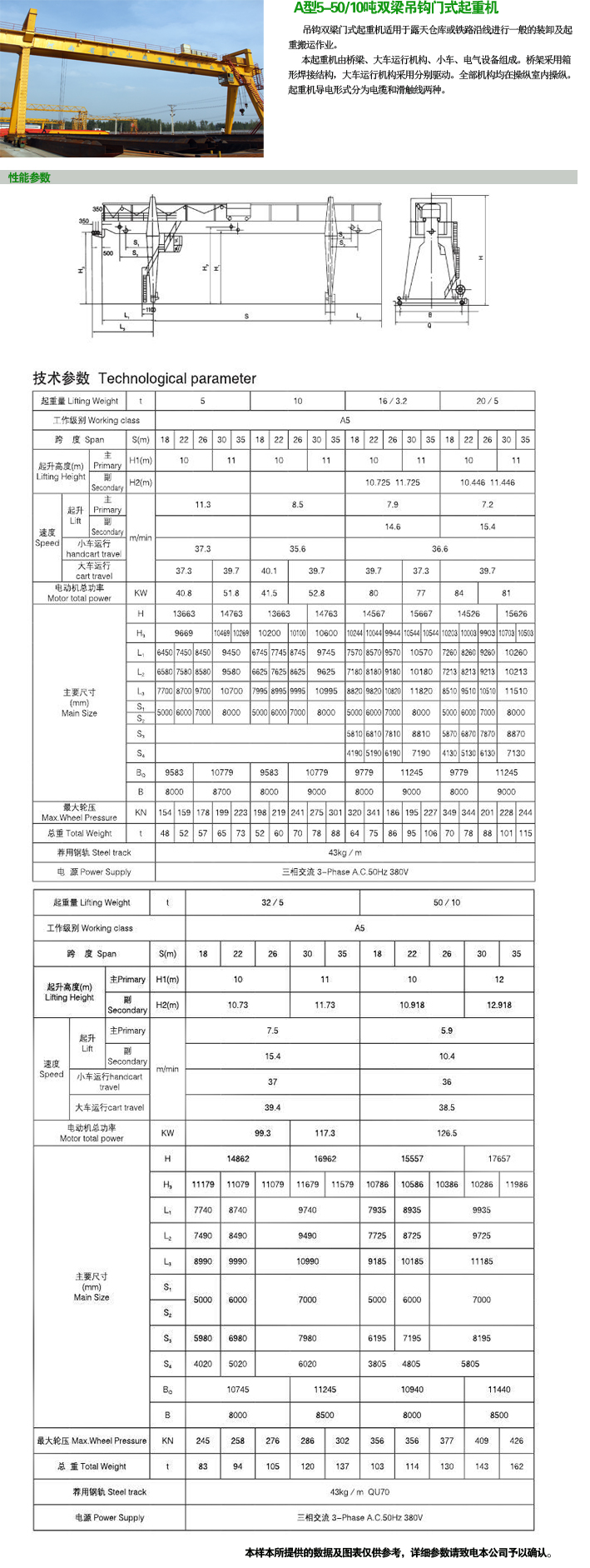 A型5-50/10噸雙梁吊鉤門式起重機 · 產品介紹